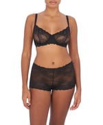Non-padded lace cups with fishnet ground to offer subtle modesty